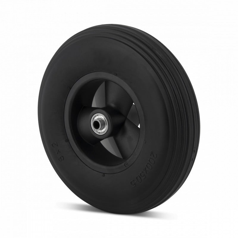 Geschäumtes PU Rad 200 mm mit Kugellagerbohrung 8 mm - 100 kg