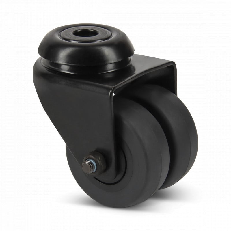 Doppelte schwarze Lenkrolle 50 mm - Bolzenloch - 80 kg