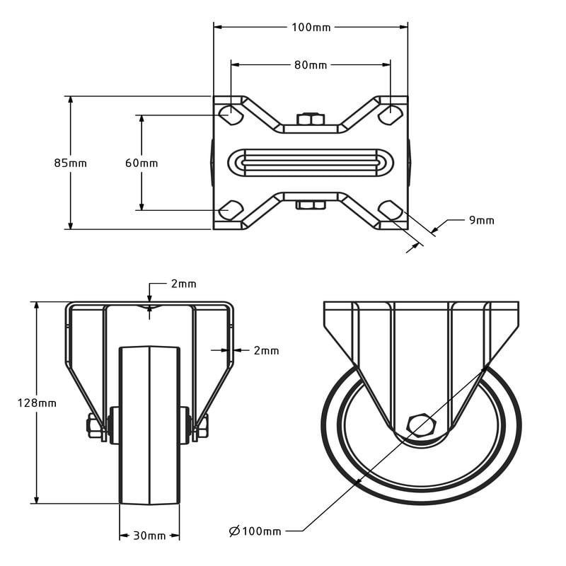 - Bolzenlochabstand: 80 x 60 - Ø 9 mm