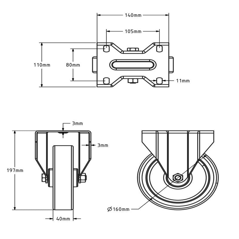 - Bolzenlochabstand: 105 x 80 / 105 x 75 - Ø 11 mm