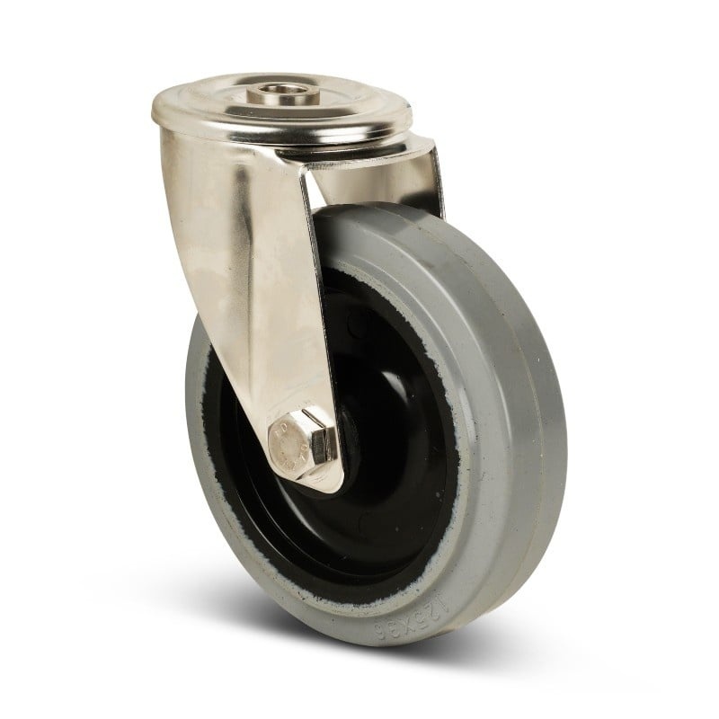 Edelstahl-Lenkrollen 125 mm mit grauem Elastik-Gummireifen