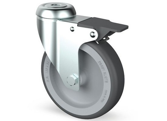 Lenkrollen mit Bremse aus Edelstahl 60 mm Gummi mit Bolzenlochbefestigung m12 - 40 kg