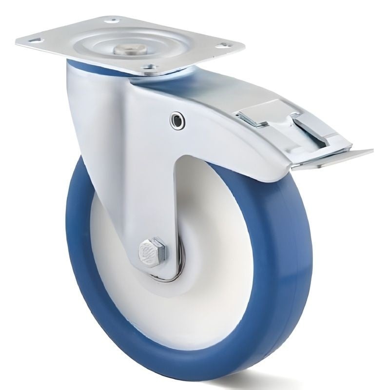 Edelstahl PU Lenkrolle mit Bremse 160 mm mit Kugellager und Platte - 450 kg
