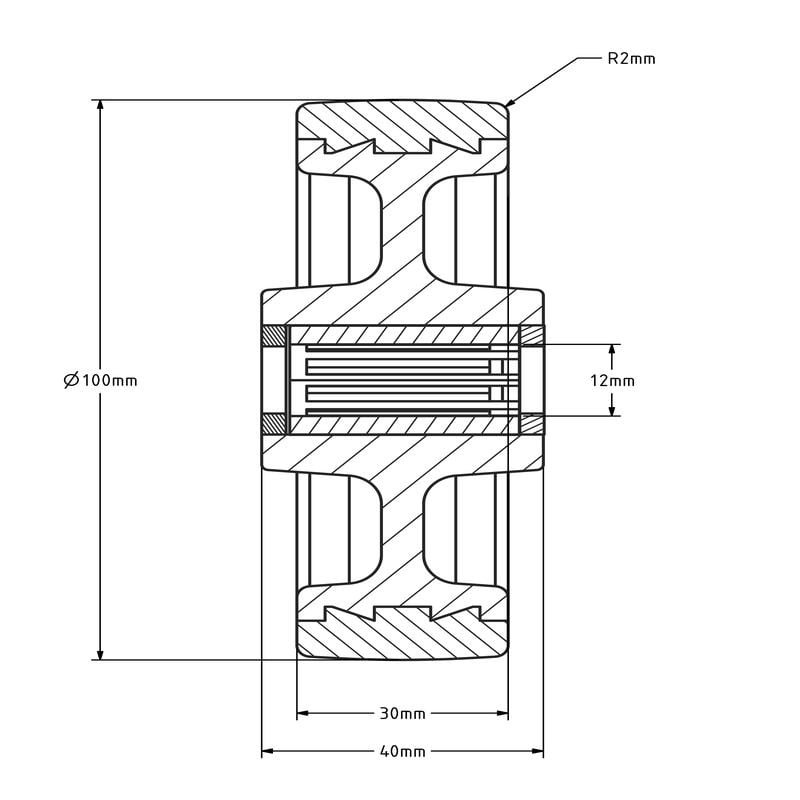 Edelstahlrad 100 mm PU mit Edelstahl-Rollenlagerbohrung 12 mm - 150 kg