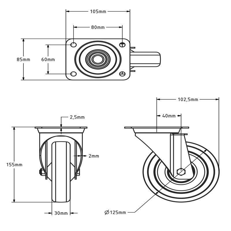 - Raddurchmesser: 125 mm