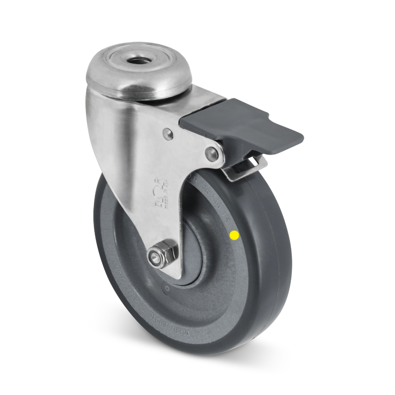 Edelstahl - Inox / Antistatische Lenkrollen mit Bolzenlochbefestigung.