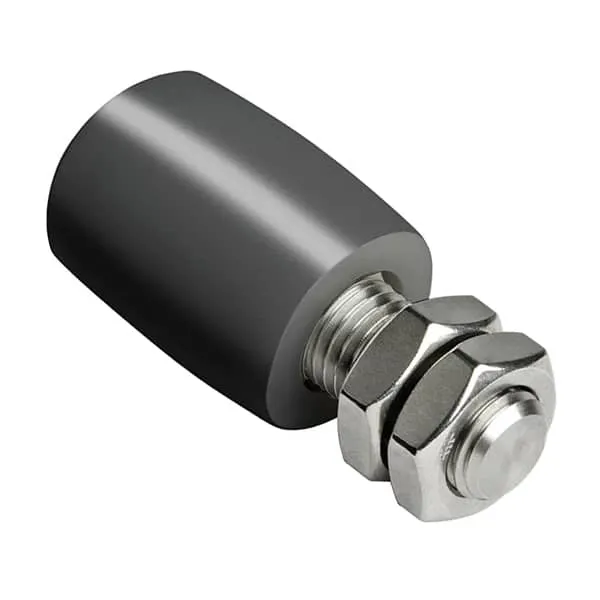 Führungsrollen aus Gummi mit Gleitlager auf einer verzinkten Innensechskantschraube m16. Die Rollen haben zwei Muttern, eine Unterlegscheibe und einen Federring. Sie werden häufig für Gleitmechanismen zur linearen Führung zwischen z.B. einer Tür oder einem Tor verwendet. Die Rollen sind verschleißfest und wartungsfrei. Dank der m14-Innensechskantschraube können die Rollen auf verschiedene Weise für lineare Führungen in Ausstattungen, Maschinen oder Produktionslinien montiert werden.