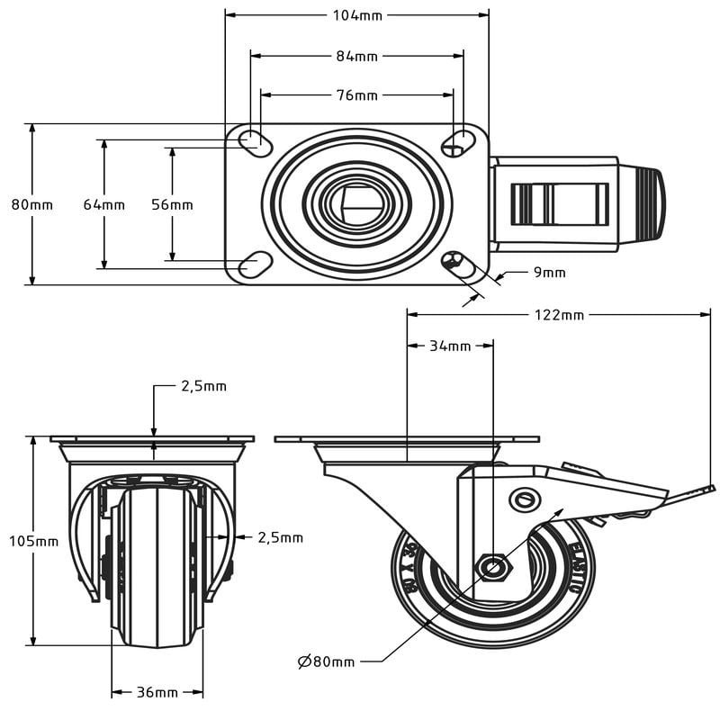 - Raddurchmesser: 80 mm