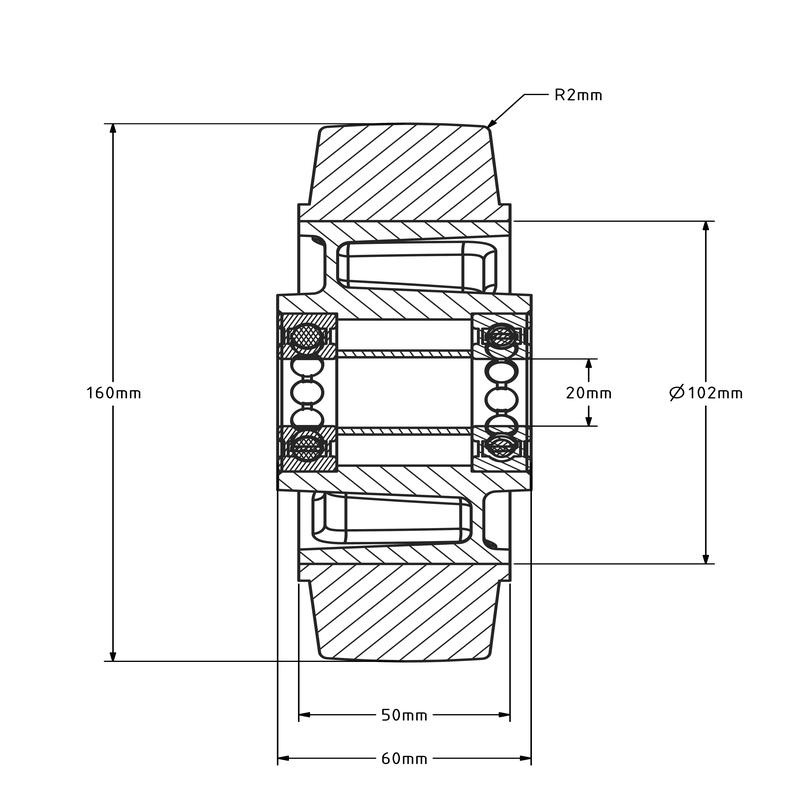 Gummirad 160 mm mit Kugellagerbohrung 20 mm - 350 kg