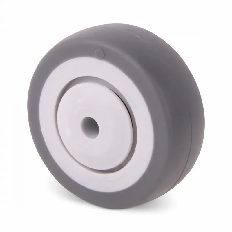 Für leichte Anwendungen, die auf flachen oder leicht rauen Oberflächen fahren, sind tpr Räder sehr gut geeignet. Ein wichtiges Merkmal eines thermoplastischen Rades ist, dass das Rad verschleißfest ist, was zu einer langen Lebensdauer führt. Die Räder sind außerdem geruchsneutral und relativ unempfindlich gegen Beschädigungen. Einer der größten Vorteile ist, dass der Geräuschpegel im Gegensatz zu Kunststoffrädern bei einem tpr-Gummireifen deutlich reduziert ist. Dies schafft eine angenehmere Situation für Sie, Ihre Mitarbeiter oder Endverbraucher. Die tpr-Räder haben eine Härte von ca. 88 Shore A, was eine gewisse Dämpfung bietet, um problemlos über leicht unebene Böden zu fahren. Bei sehr häufigem Gebrauch werden außerdem Spurrillen auf dem Boden vermieden. Die TPR-Räder sind weit verbreitet, weil sie gute Eigenschaften haben, um leichte Geräte, Möbel und Wagen gleichmäßig zu bewegen.