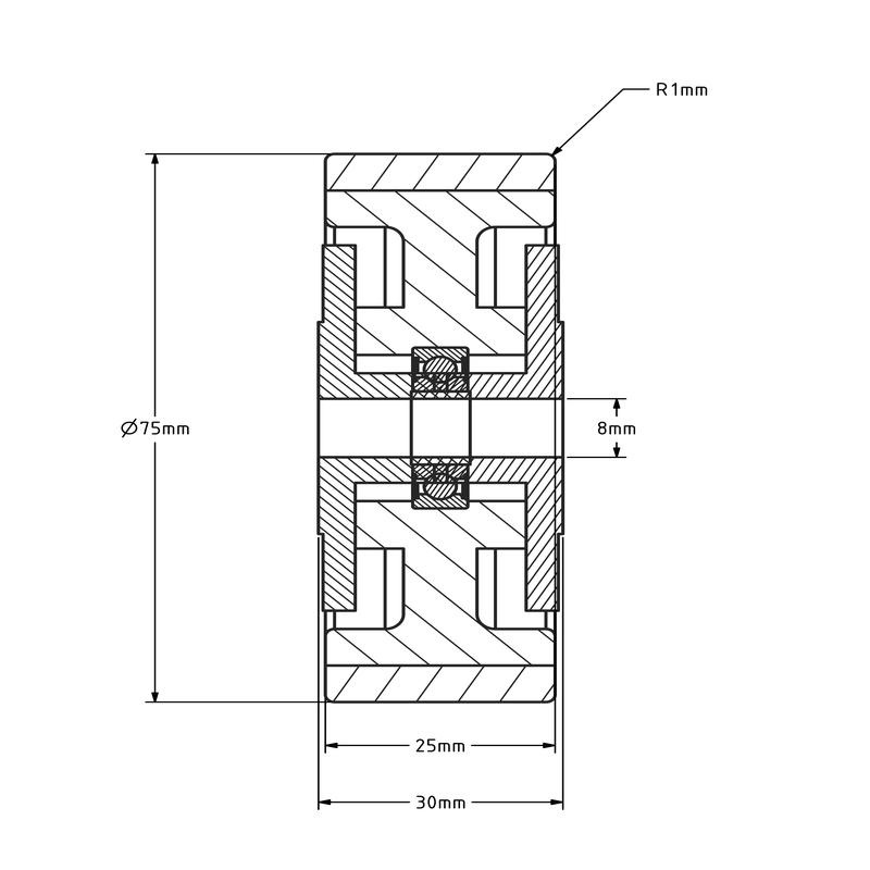 Gummirad 75 mm - Kugellagerbohrung 8 mm - 75 kg