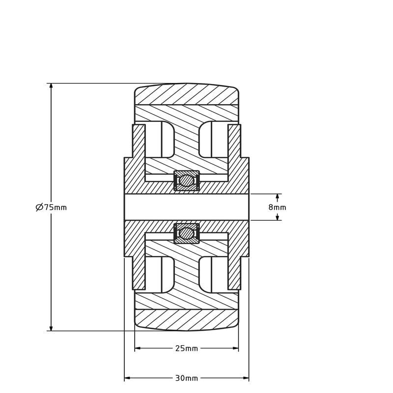 Gummirad 75 mm mit Kugellagerbohrung 8 mm - 75 kg