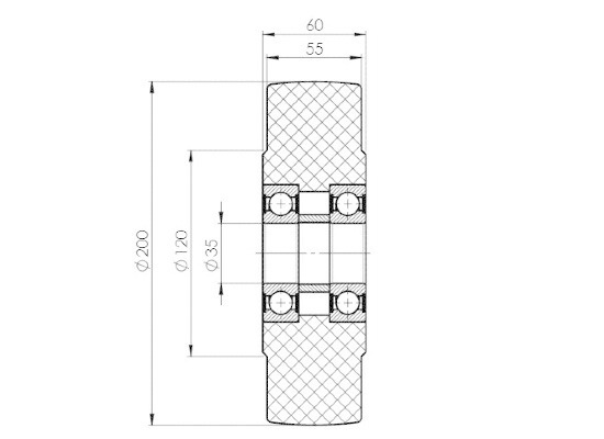 Gussnylonrad 200 mm mit Kugellagerbohrung 35 mm - 3000 kg