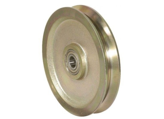 Rillenrad aus Stahl (gelb verzinkt) mit Kugellagern.