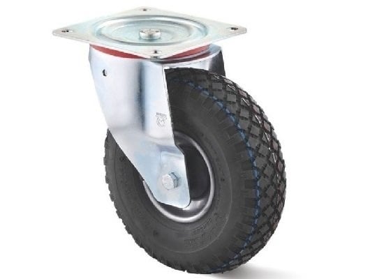 Lenkrolle 260 mm luftbereift mit Rollenlager und Platte - 200 kg