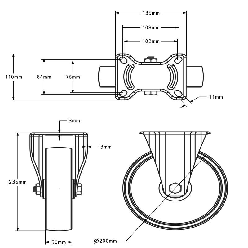Bockrolle aus Nylon 200 mm - Rollenlager - 350 kg