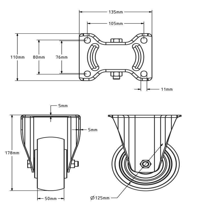Schwerlast-Bockrolle aus Nylon 125 mm - 700 kg