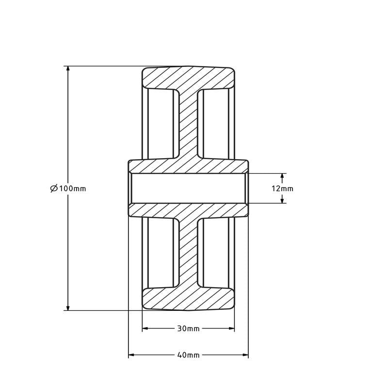 Nylon Rad 100 mm - Bohrung 12 mm - 200 kg