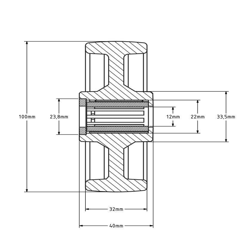 Nylonrad 100 mm mit Rollenlagerbohrung 12 mm - 200 kg