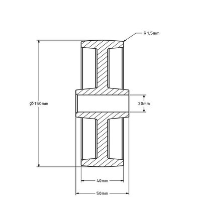 Nylonrad 150 mm mit Bohrung 20 mm - 350 kg