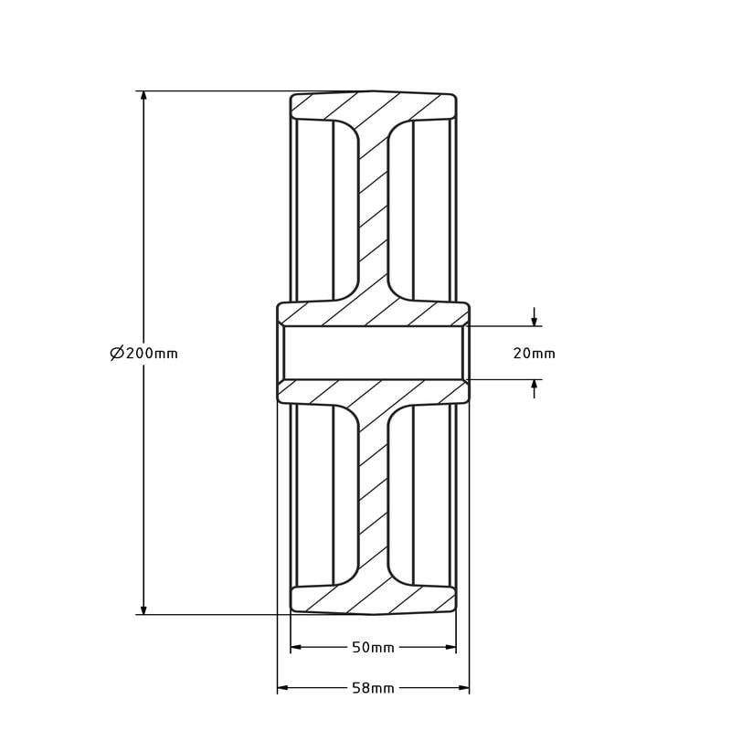 Nylon Rad 200 mm - Bohrung 20 mm - 550 kg