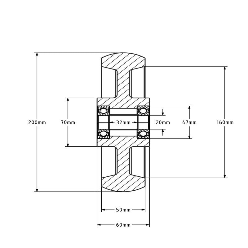 Nylon Rad 200 mm - Kugellagerbohrung 20 mm - 1000 kg