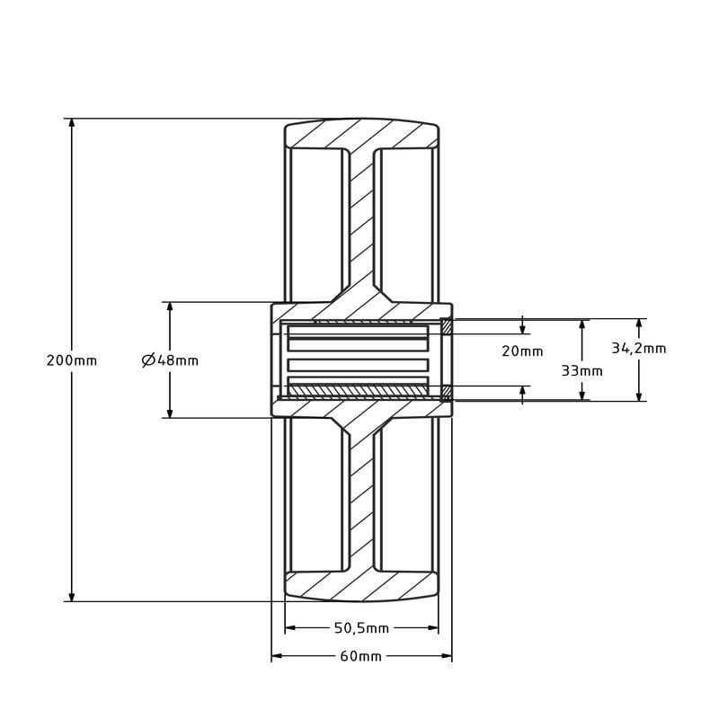 Nylonrad 200 mm mit Rollenlagerbohrung 20 mm - 550 kg