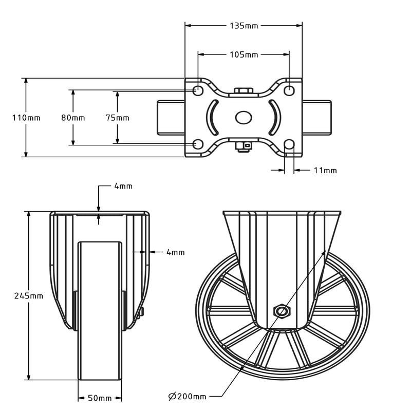 PU Bockrolle 200 mm - verstärkt - kugelgelagert - 800 kg