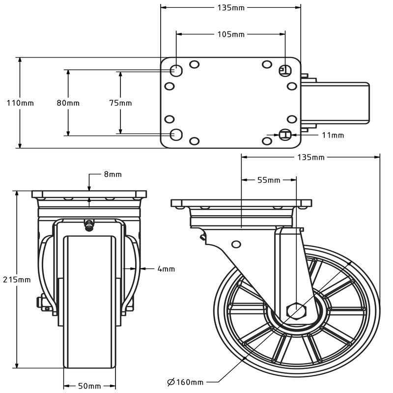 PU Lenkrolle 160 mm - verstärkt - kugelgelagert - 800 kg