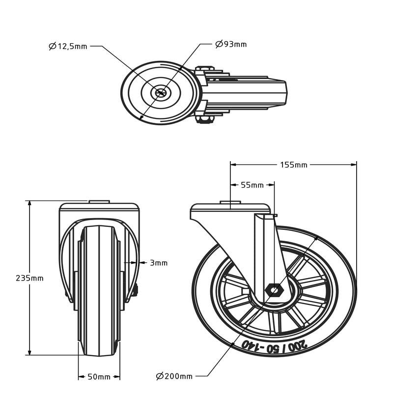 - Raddurchmesser: 200 mm