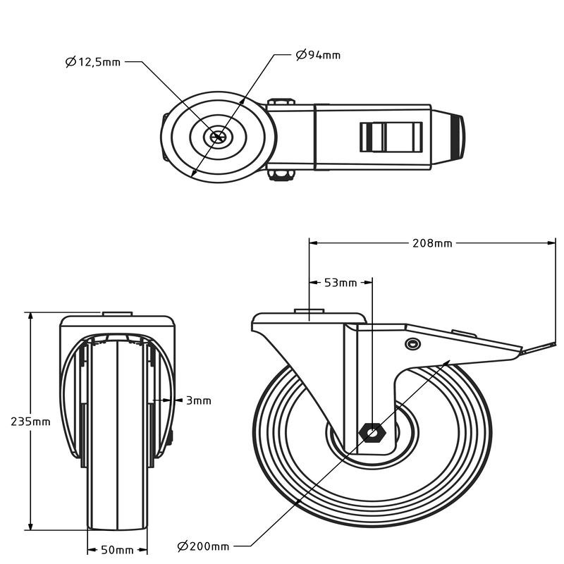 - Raddurchmesser: 200 mm