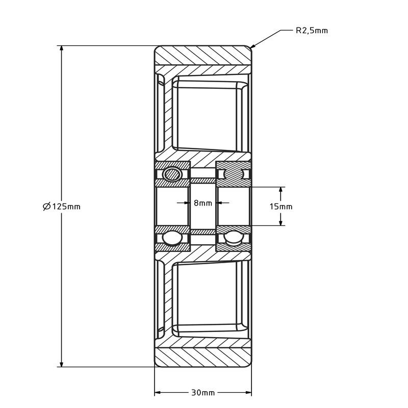 PU Rad 125 mm - Kugellagerbohrung 15 mm - 250 kg