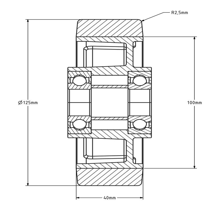 PU Rad 125 mm mit Kugellagerbohrung 20 mm - 350 kg