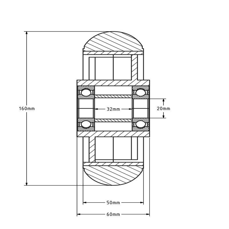 PU Rad 160 mm gewölbt mit Kugellagerbohrung 20 mm - 510 kg