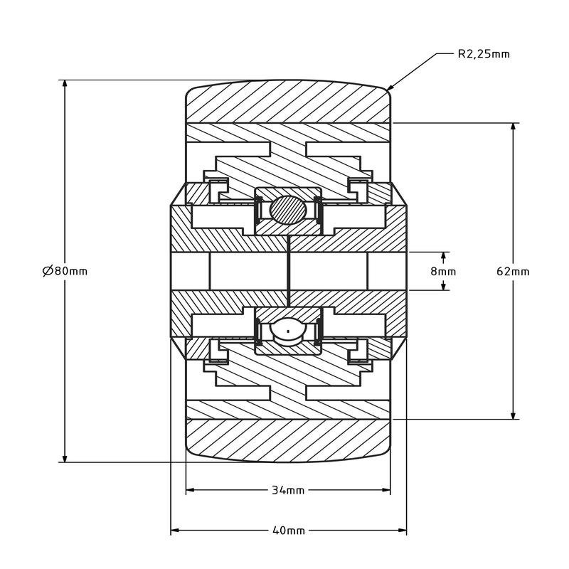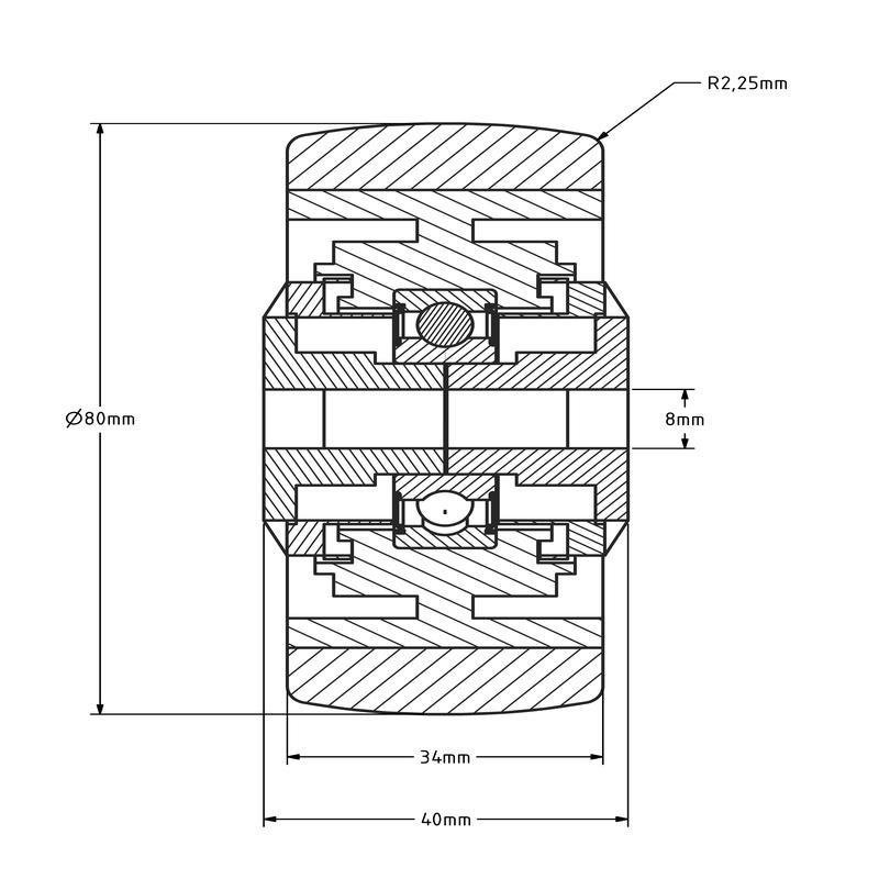 PU-Rad 80 mm mit Kugellagerbohrung 8 mm - 120 kg