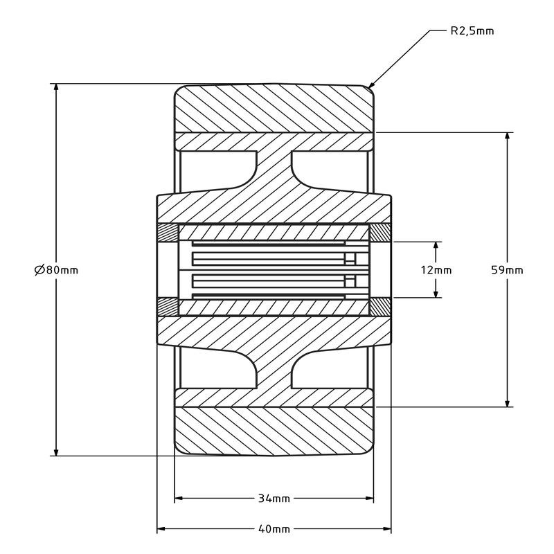 PU-Rad 80 mm mit Rollenlagerbohrung 12 mm - 130 kg