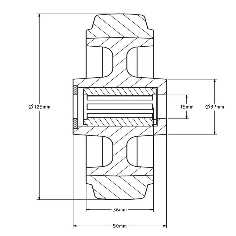 Edelstahlrad 125 mm mit Edelstahlrollenlager Achsloch 15 mm - 250 kg