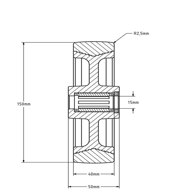 Edelstahlrad 150 mm PU mit Edelstahlrollenlager Achsloch 15 mm - 400 kg