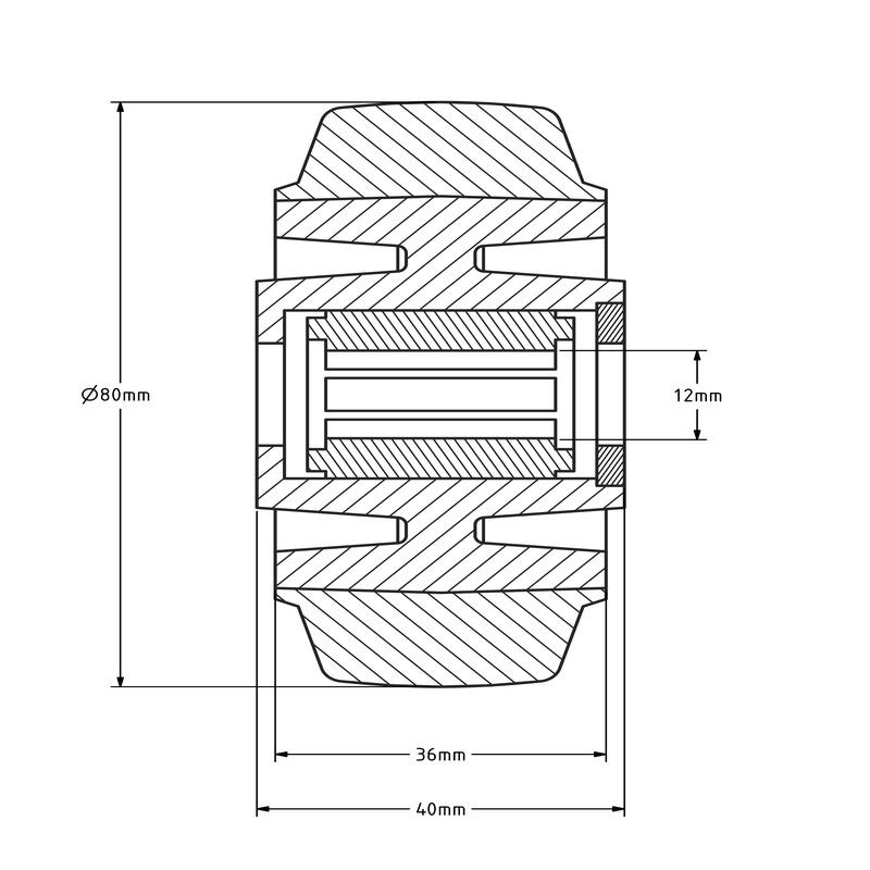 Edelstahlrad 80 mm mit Edelstahl-Rollenlagerbohrung 12 mm - 110 kg