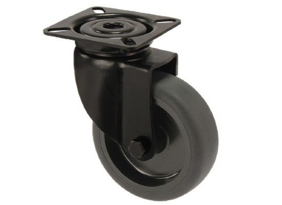 Schwarze Lenkrolle 100 mm - Platte - 80 kg
