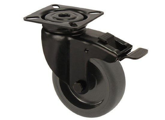 Schwarze Lenkrollen mit Bremse 100 mm - Platte - 80 kg