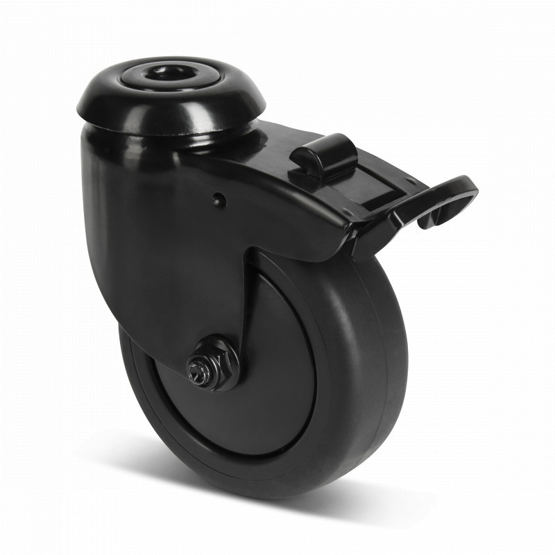 Schwarze Lenkrolle mit Bremse 75 mm - Kugellager - Bolzenloch - 75 kg