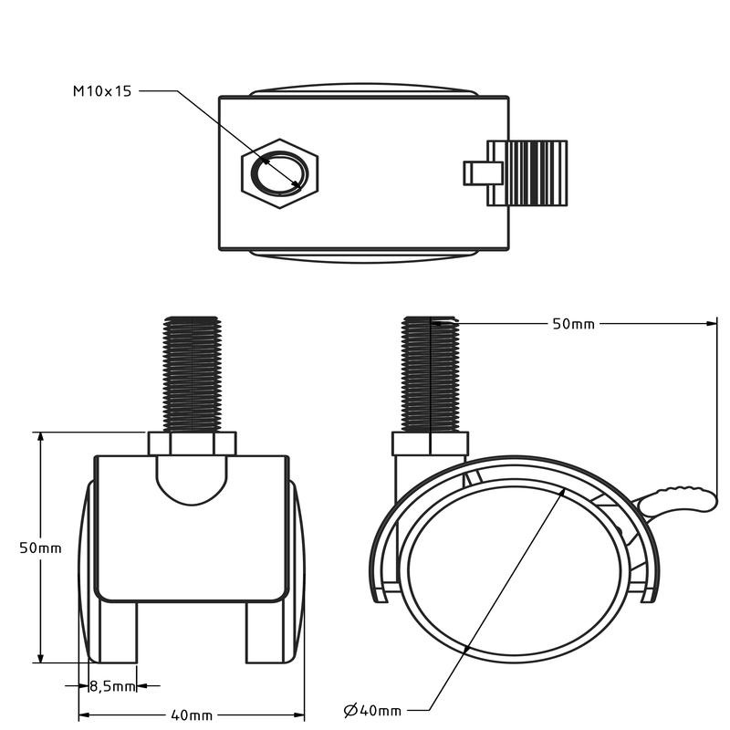 Schwarze Möbelrolle mit Bremse 40 mm - M10