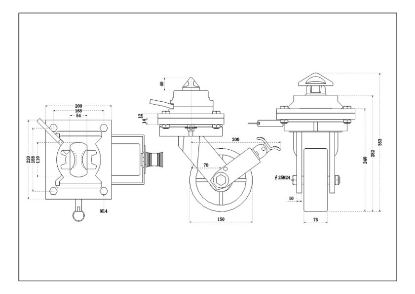 Seecontainer Lenkrolle mit Bremse 150 mm mit ISO Twistlock - 3000 kg