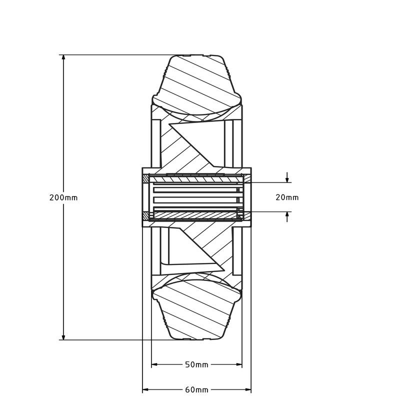 Gummirad 200 mm - Rollenlagerbohrung 20 mm - 205 kg